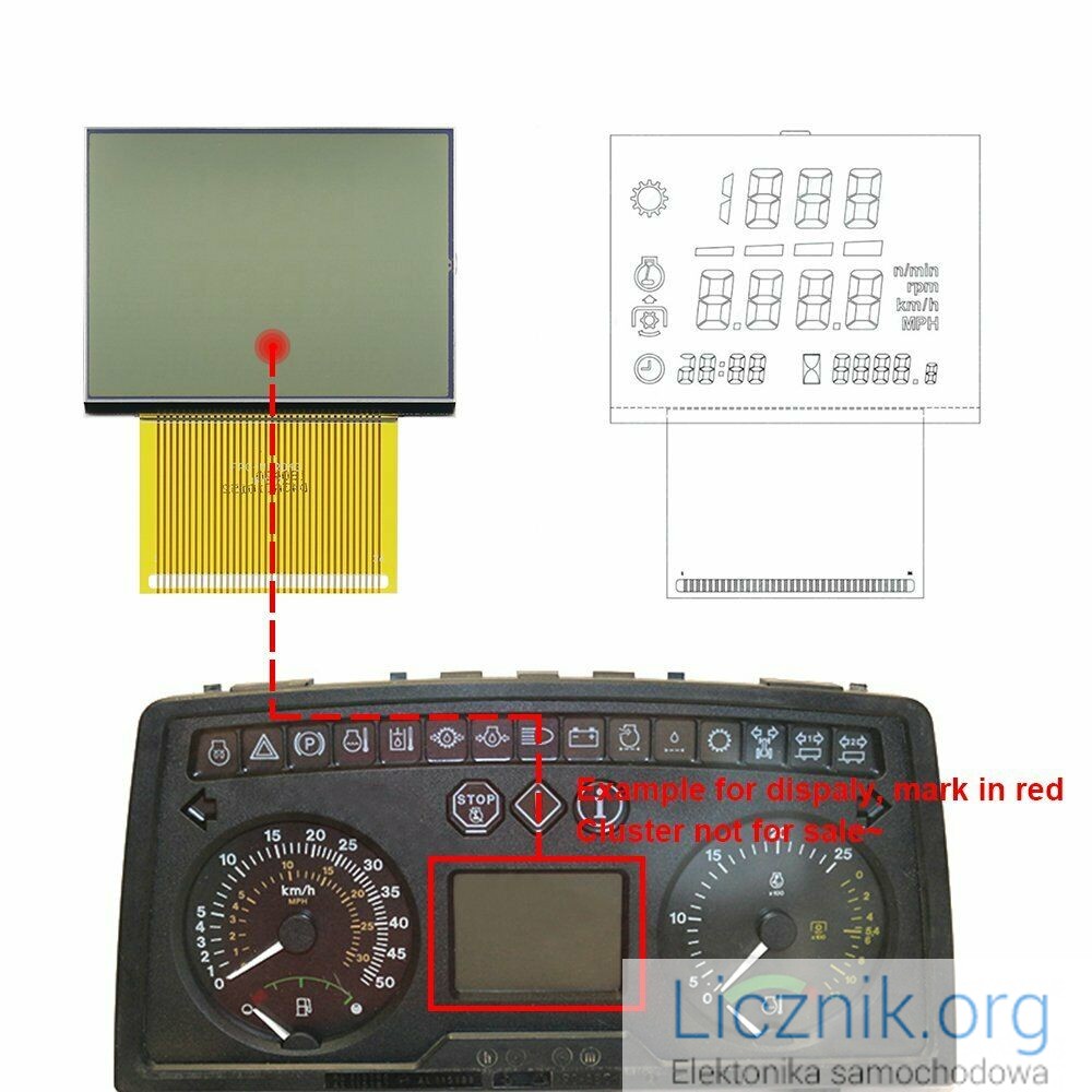 ,W PRZECIWIEŃSTWIE DO WYŚWIETLACZY KTÓRE MAJĄ TAŚMĘ FOLIOWĄ KTÓRĄ TRZEBA KLEIĆ NA KLEJE PRZEWODZĄCE ,CO TAK JAK W ORGINALNYM LICZNIKU PROWADZI DO USTEREK WYŚWIETLANIA INFORMACJI NA WYŚWIETLACZU Z POWODU BRAKU KONTAKTU KLEJU PRZEWODZĄCEGO Z PŁYTĄ GŁÓWNĄ